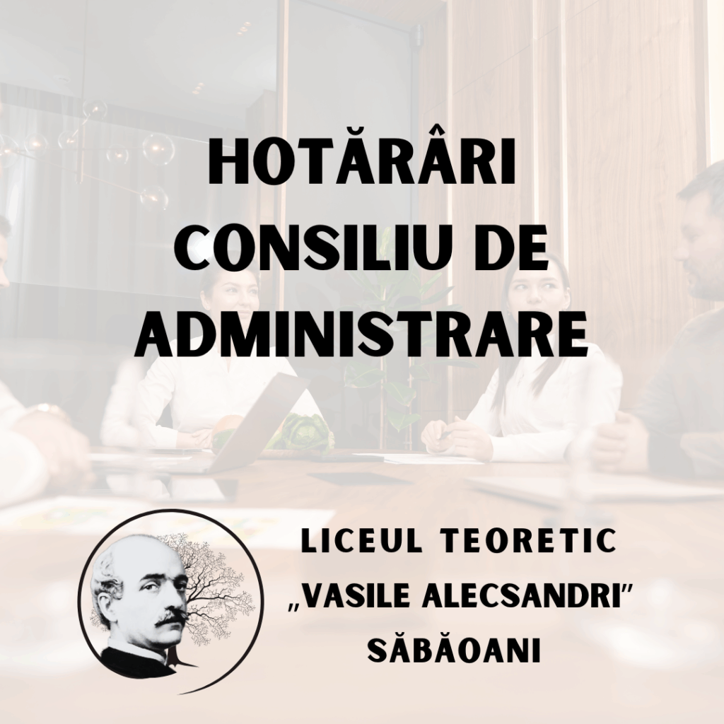 Hotărâri ale Consiliului de Administrație al Liceului Teoretic ”Vasile Alecsandri”, Comuna Săbăoani